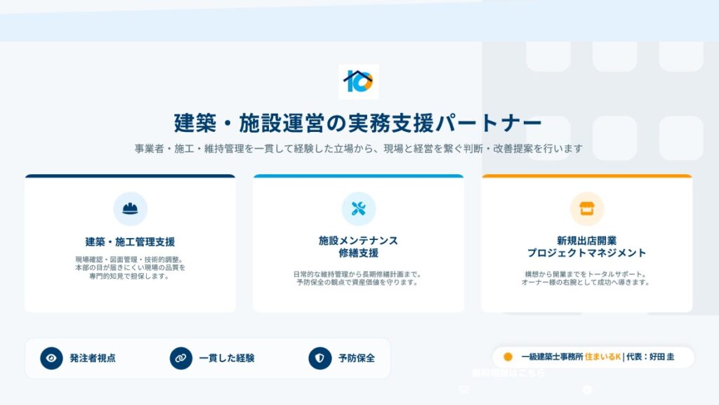 店舗開発・建物維持管理を実務で支える建築パートナー