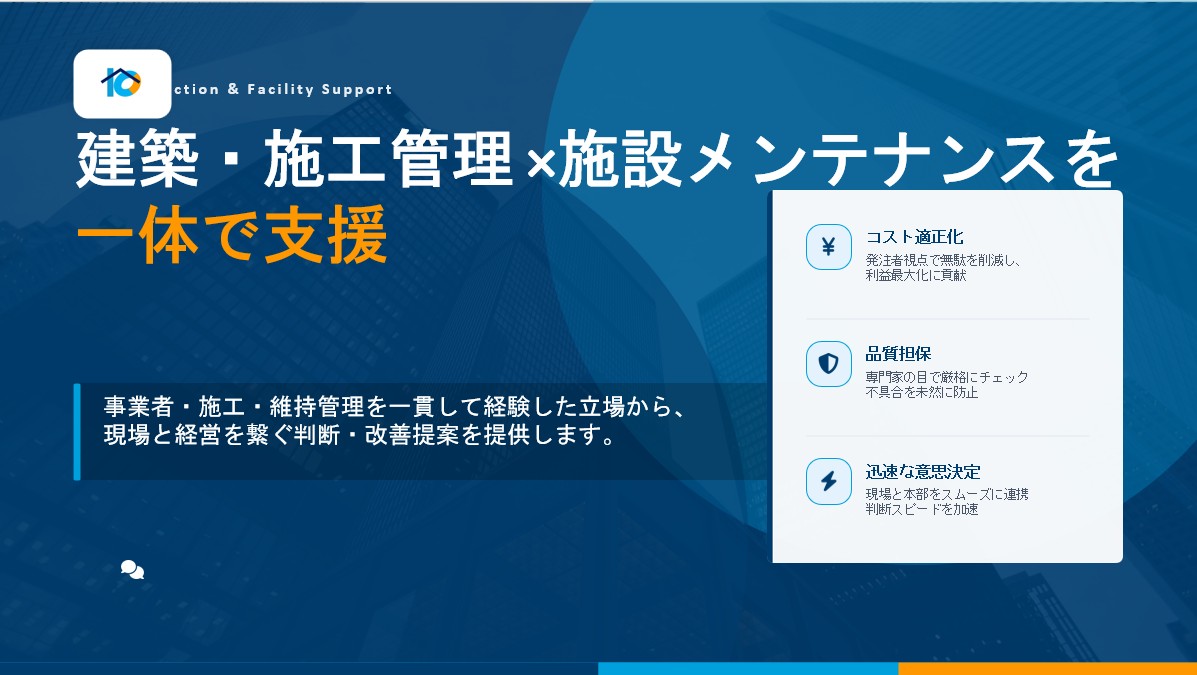 企業の建築業務を実務レベルで支援します。